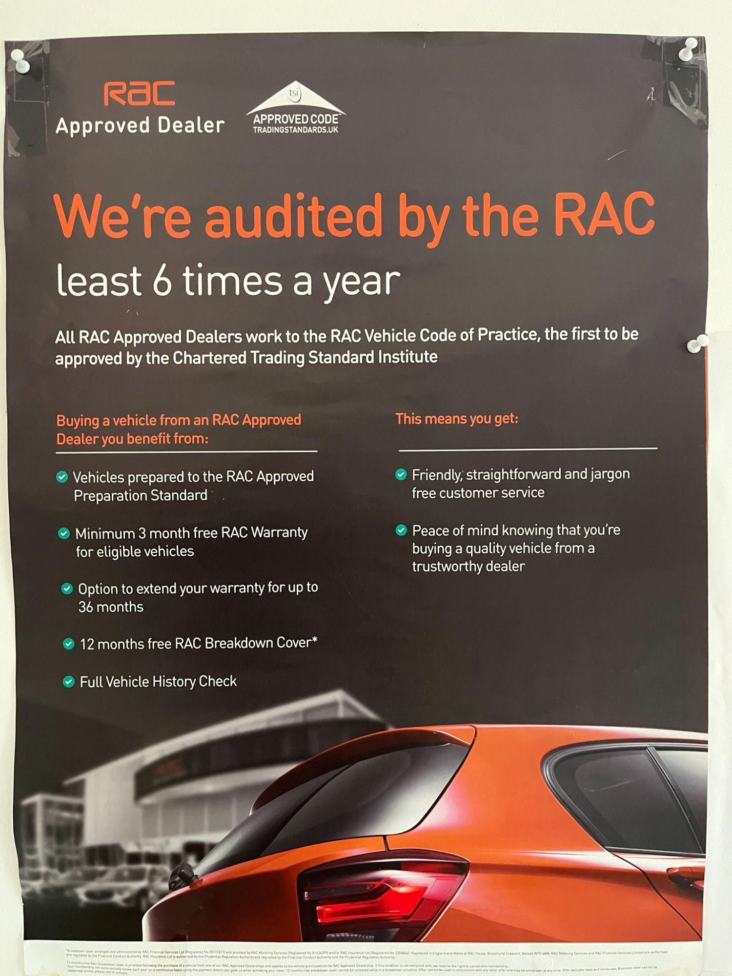 All our vehicles for sale, comes with a comprehensive RAC approved warranty backed up by all the franchises with 12 months RAC break down cover added at no cost, Knowing you in safe hands anywhere in the uk.24/7.