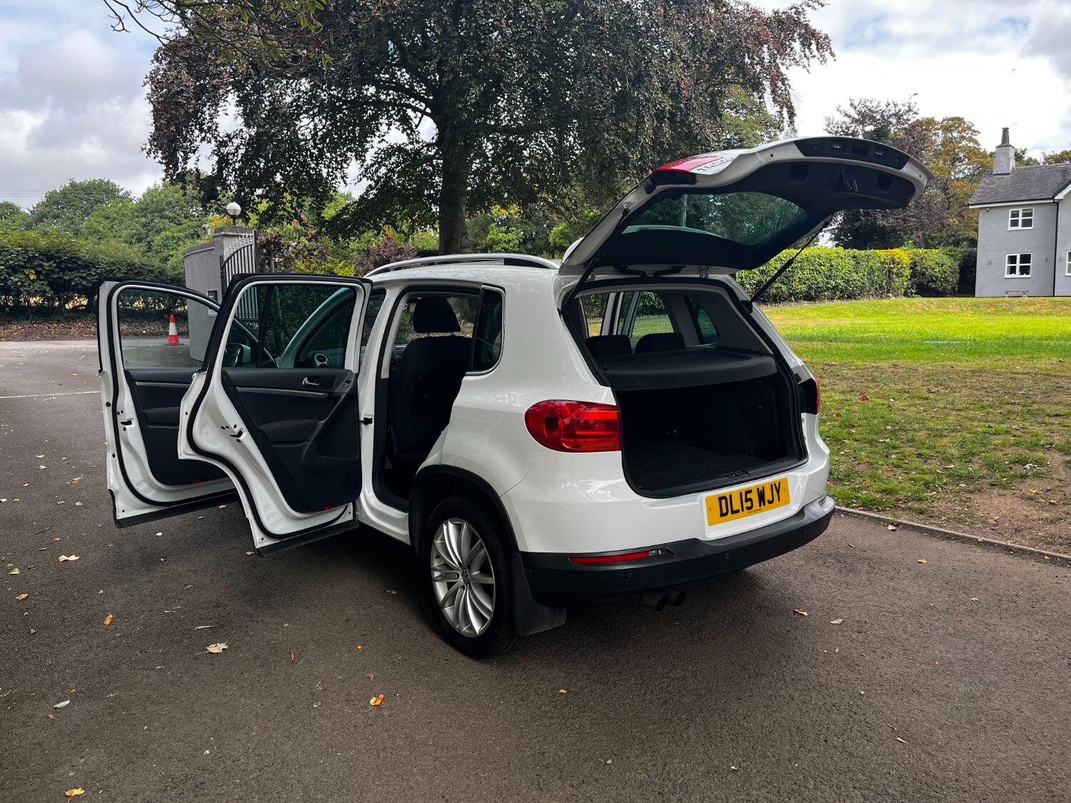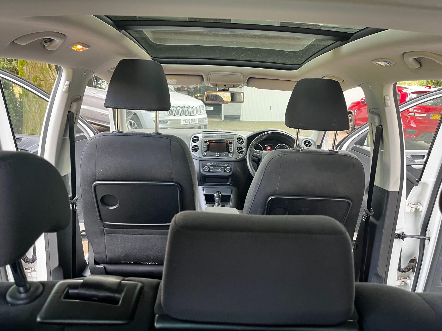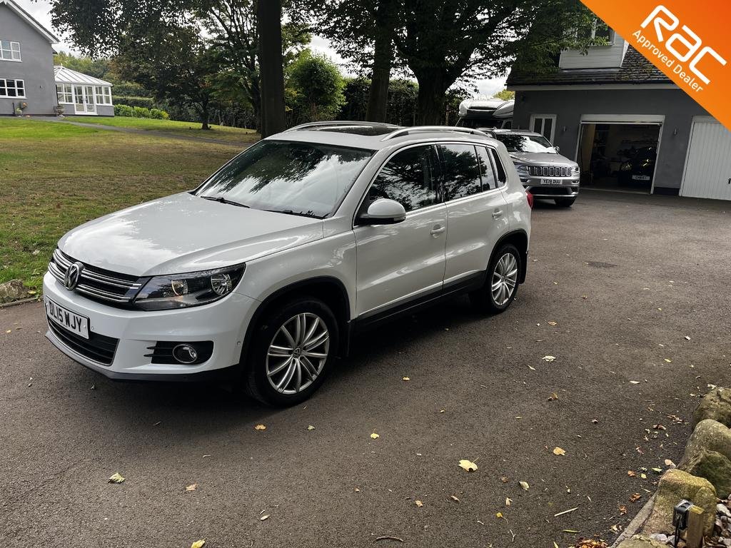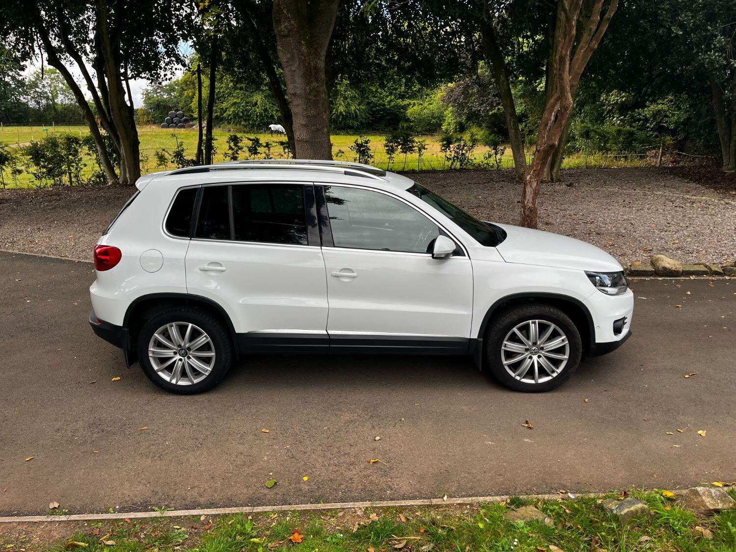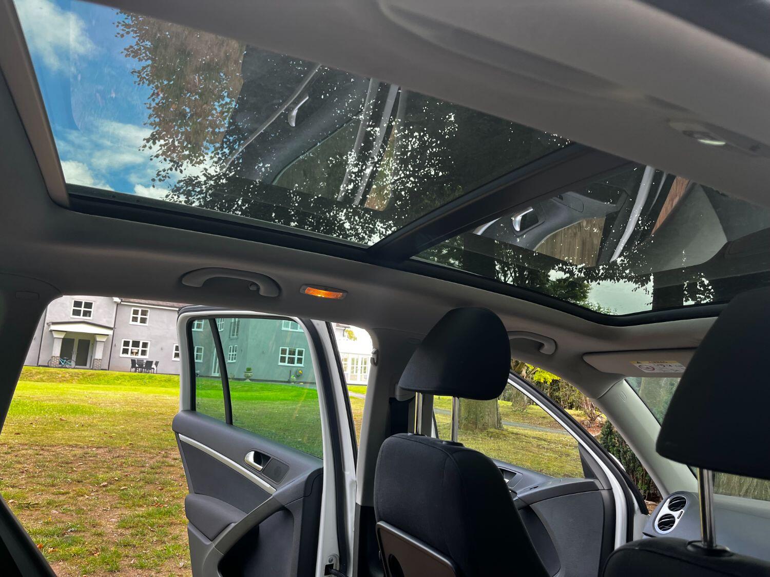 VW Tiguan 2.0Tdi 4Motion 4x4 Start stop Match in White with Grey Valour heated seats Interior, Satellite Navigation, Panoramic Sunroof, Park assist, Four wheel drive, 2 Zone Elect. Air Cond. with Auto. Air Recirc., 5.0in Colour Touch Screen,18inch Alloy Wheels,Anti Theft Wheel Bolts, Alarm with Interior Protection, Bluetooth Telephone and Audio Connection for Compatible Devices, Electric Windows, Front and Rear, Heat Insul. Rear Tinted Gl. 65 Per. Light Absorb., Heat Insulating Green Tinted Glass, Multifunction Computer, Radio/Dash - Mounted Single CD Player/Music Playback from MP3, WMA and AAC Files/AUX-in Socket/SD Card Reader, Rain Sensor, cruise control, park assist, Tyre Pressure Loss Indicator. 5 seats, full service history.