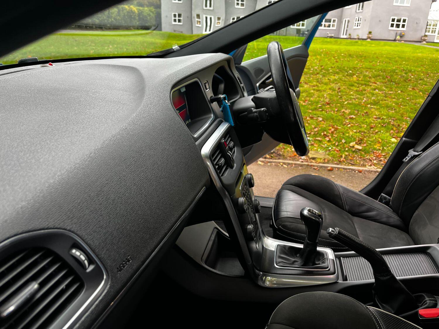 Volvo V40 R Design T2 2.0 Pro Nav Plus Euro 6 S/S, Finished in Rebel blue with heated half leather R Design charcoal seats piped in white. Satellite Navigation, Internet, Rear Reversing Camera, Multi Function Steering Wheel, DAB radio, Bluetooth telephone with music streaming, air conditioning, cruise control, Parking sensors,5 Spoke R Design Alloy wheels, Isofix seating Plus much more added and has a full service history right up to date. Please enquire
